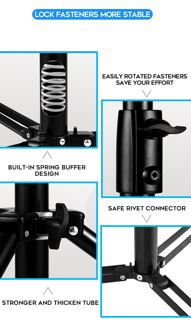 Built-in spring buffer design ,Folding, bigger and smaller, Convenient to carry and retractable lamp stand, stretch up to 400cm, shrink 118.5CM, convenient to go